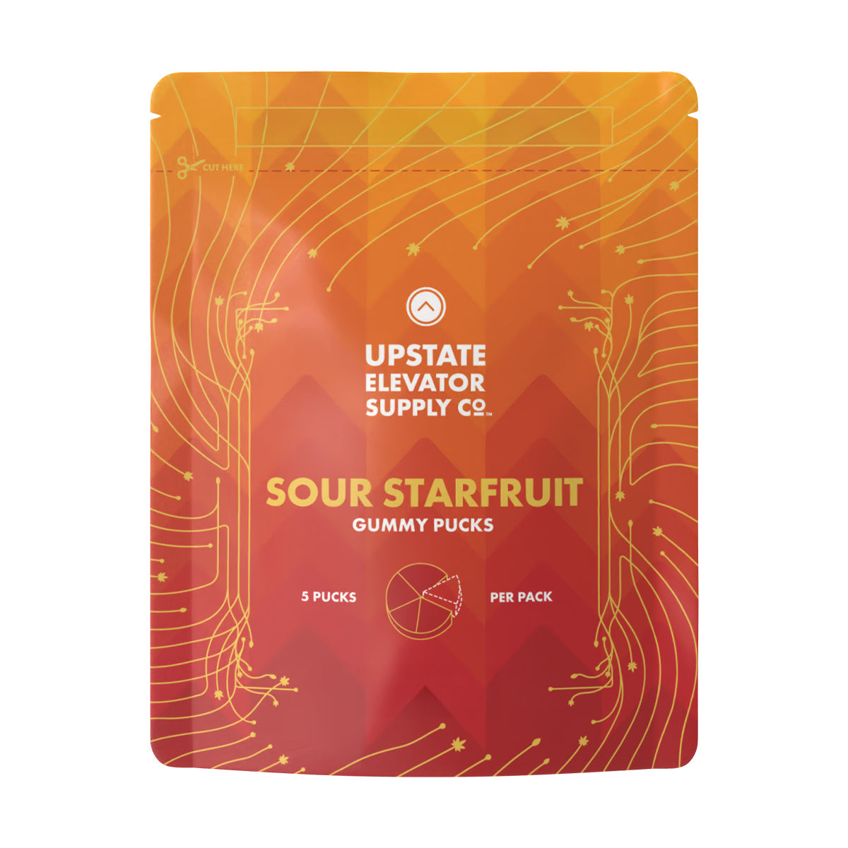 Discover the uniquely tangy and tropical taste of Upstate Elevator Sour Starfruit Gummies. Made with organic ingredients and free from artificial colors or flavors, each gummy puck delivers a bright, mouthwatering burst of starfruit in every bite.